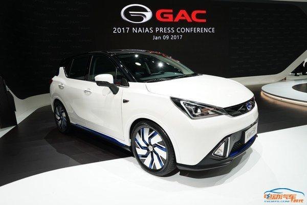2016年在北美车展上亮相的GE3,敦厚的前脸属于广汽特有的家庭符号,”三角眼“的前车灯,线条简单又富有对称几何的设计,使得前脸的辨析度很高,北美车展上的白色款也符合时尚建商务座驾的气质,全车线条避翻由简,蓝色的部分装饰色也显示了此款为新能源纯电动的气息。前进气栅底下隐隐的蓝色装饰条配合轮毂上内嵌的蓝色,也是相得益彰,有些刻意的低调。