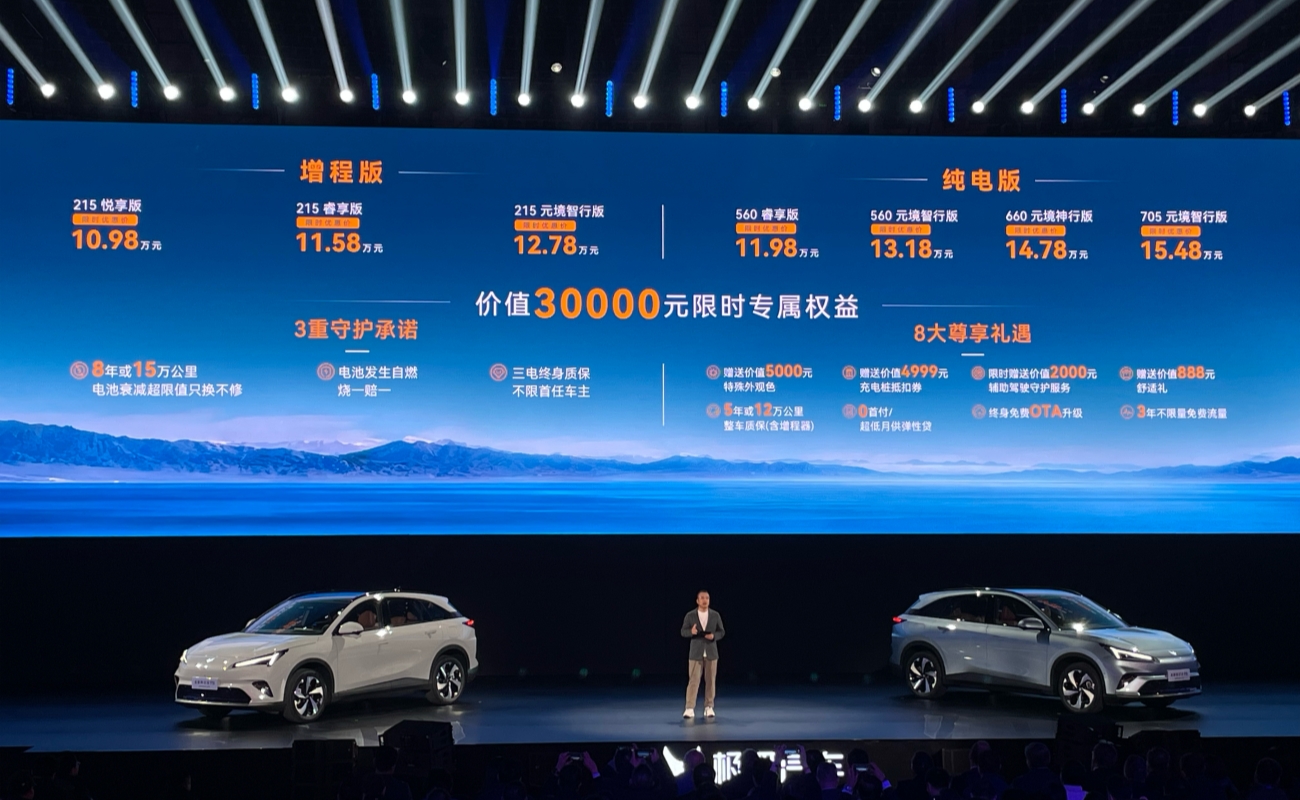 车型方面,目前阿尔法T和阿尔法S两款车型也在火热销售中,其中阿尔法S车型全系共有5款车型可以选择,售价区间为22.38万-35.03万元。动力方面有单电机和双电机两种动力可以选择,525S和525S+的百公里加速时间为7.7秒,NEDC综合工况续航里程为525公里。708S和708S+的百公里加速时间为8.3秒,NEDC综合工况续航里程为708公里,除此之外还有一款四驱车型603H,其百公里加速时间为4.2秒,NEDC综合工况续航里程为603公里。